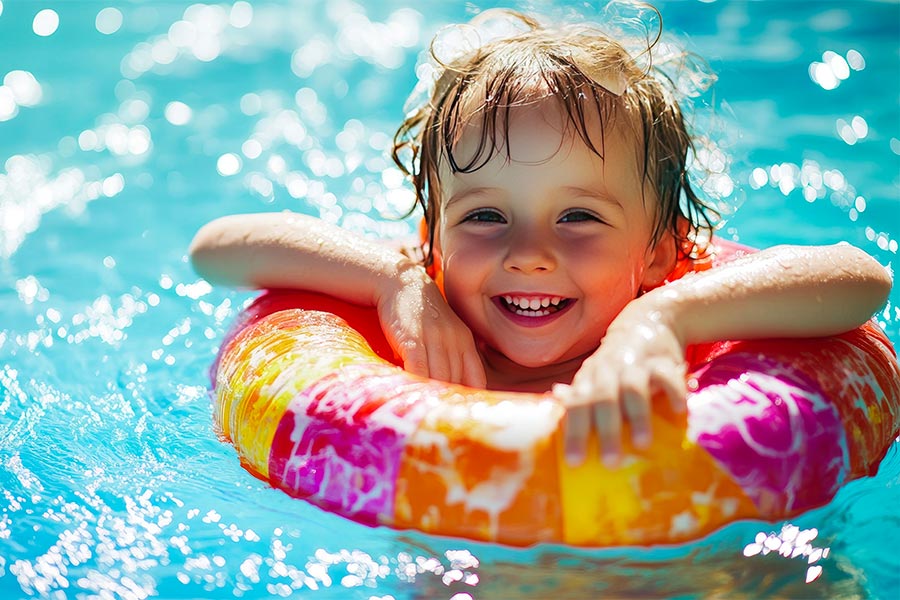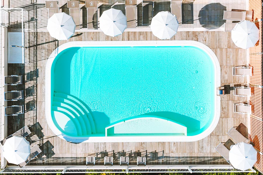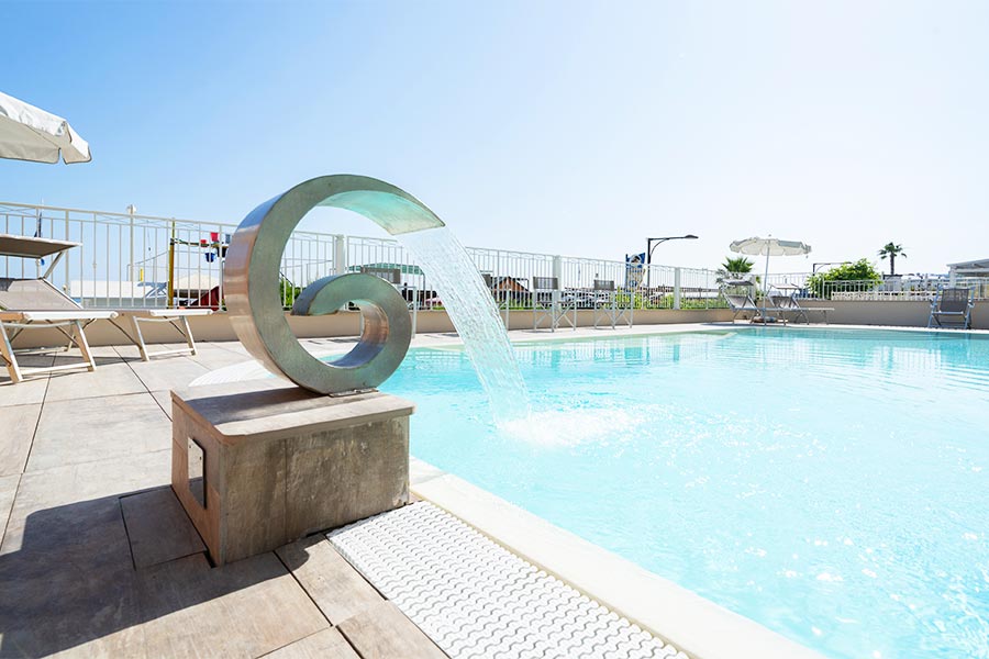 The large solarium area, with sun loungers and umbrellas, is the ideal place to perfect your tan or take a break between swims and laughter.